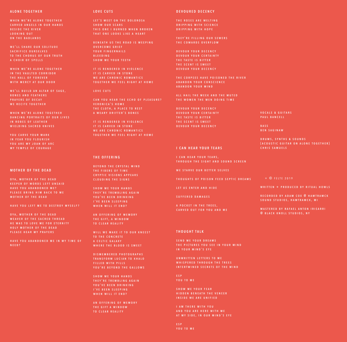 Ritual Howls create a cinematic blend of twangy industrial-rock that could fuel a post-apocalyptic dancefloor. A collaboration between Paul Bancell (vocals, guitar), Chris Samuels (synth, samples, drum machine), and Ben Saginaw (bass), the Detroit trio create expansive arrangements sculpted with masterful production. ... more