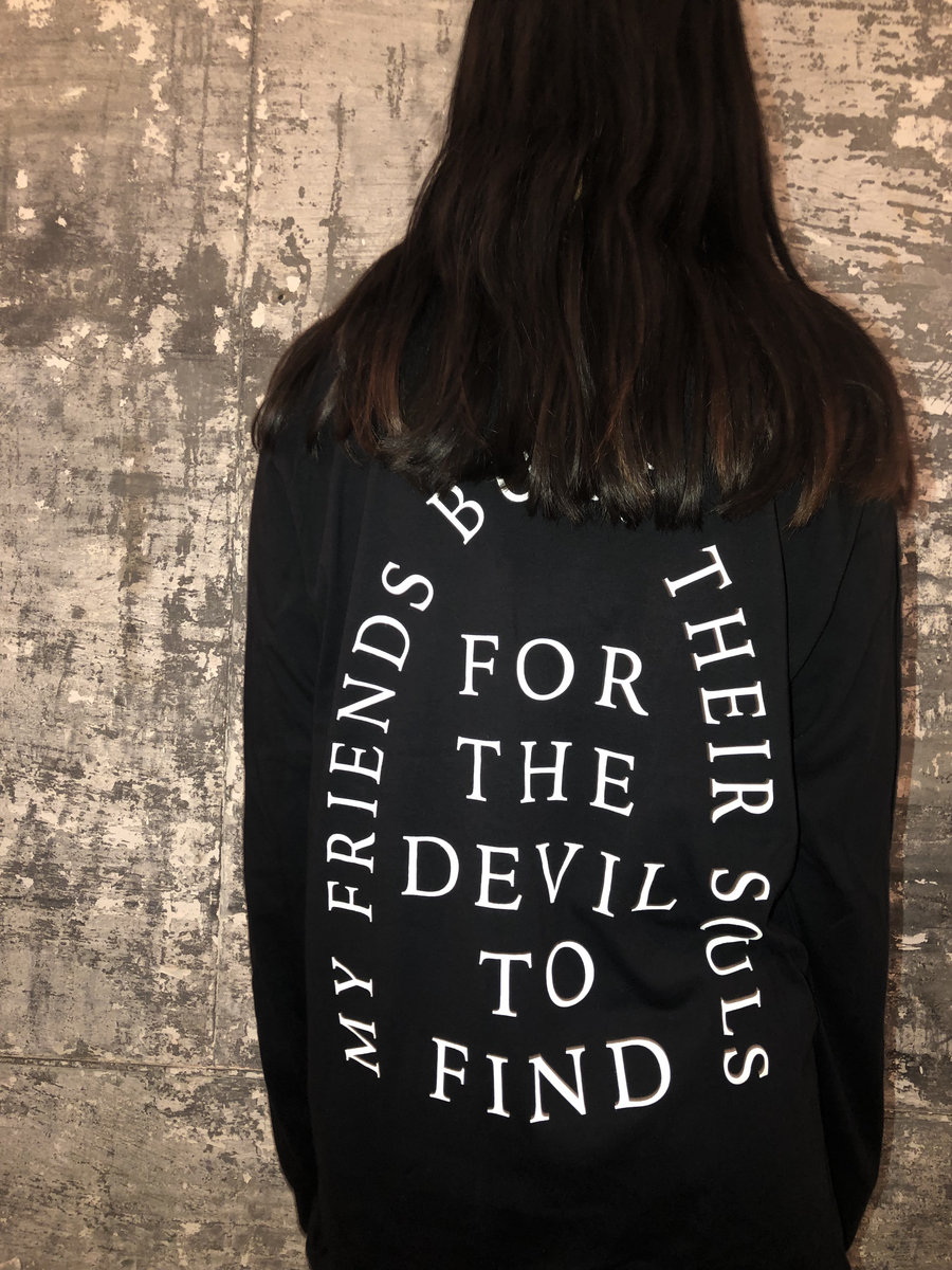 "My Friends Bury Their Souls for the Devil to Find" print on back